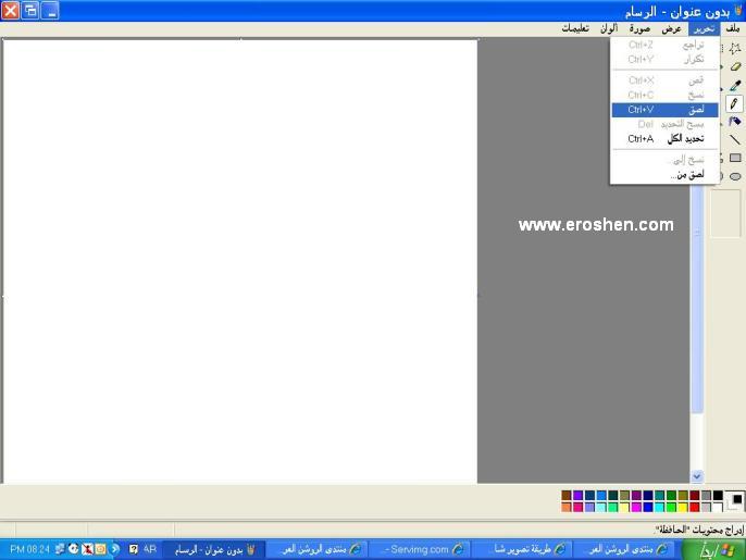 3 – من برنامج الرسام .. أضغط على تحرير + لصق وستظهر الصورة التي التقطت
